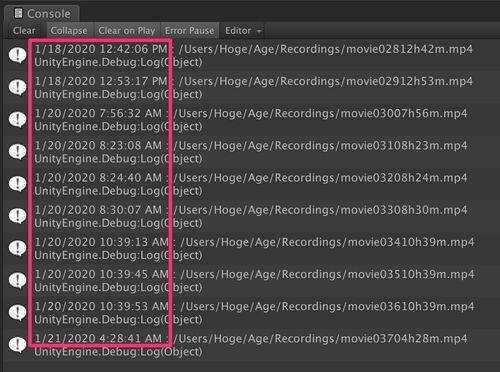 LINQとは はじめに 今回はファイルを作成した日、変更した日、最後に開いた日といういわゆるタイムスタンプを基準にC#でファイルを並び替える方法の紹介です。 なお、Unity上で動かしているので、ログの表示にDebug.Logを使っています。 タイムスタンプの取得