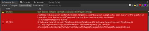 この記事でのバージョン Unity 2022.2.2f1 はじめに 今回は以下のような警告とエラーが出た場合の原因と対処法の紹介です! [Warning] [07:20:51] Non-secure network connections disabled in Player Settings [Error] [07:20:51] Job failed with exceptio…