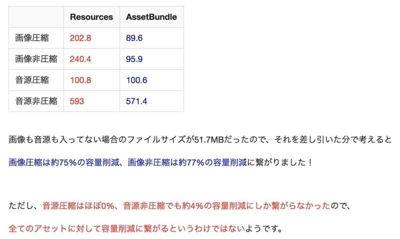 もう一つの8位はResourcesをAssetBundleに置き換えたらどの程度容量削減に繋がるのかという記事。