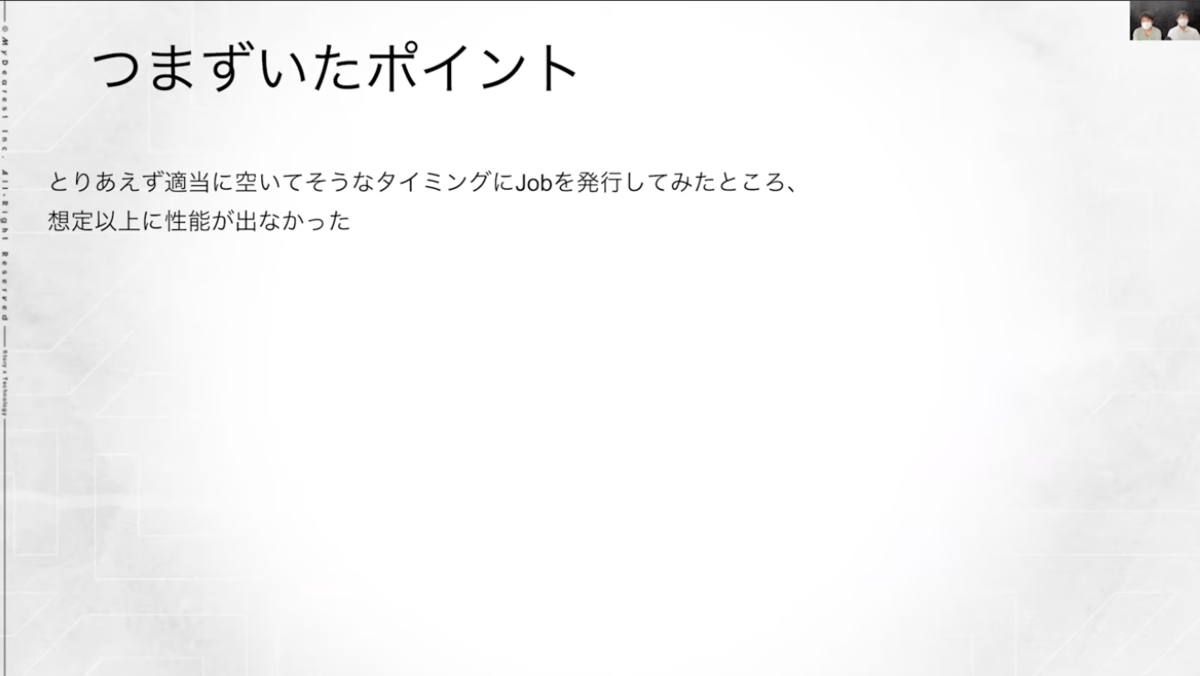 最終的にはJobを投げるタイミングを分散させる事で解決したそうです。